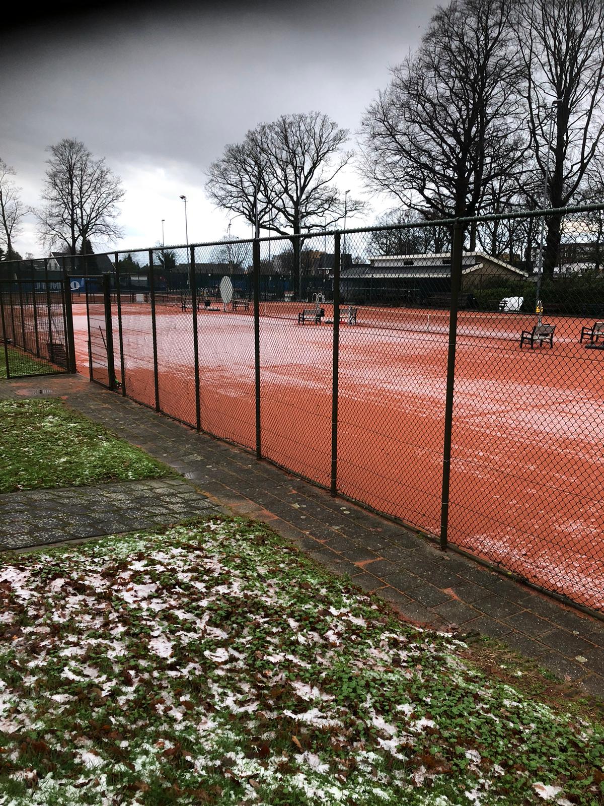 Alle tennis- en padelbanen zijn in ieder geval tot en met woensdag gesloten in verband met sneeuw en opdooi.