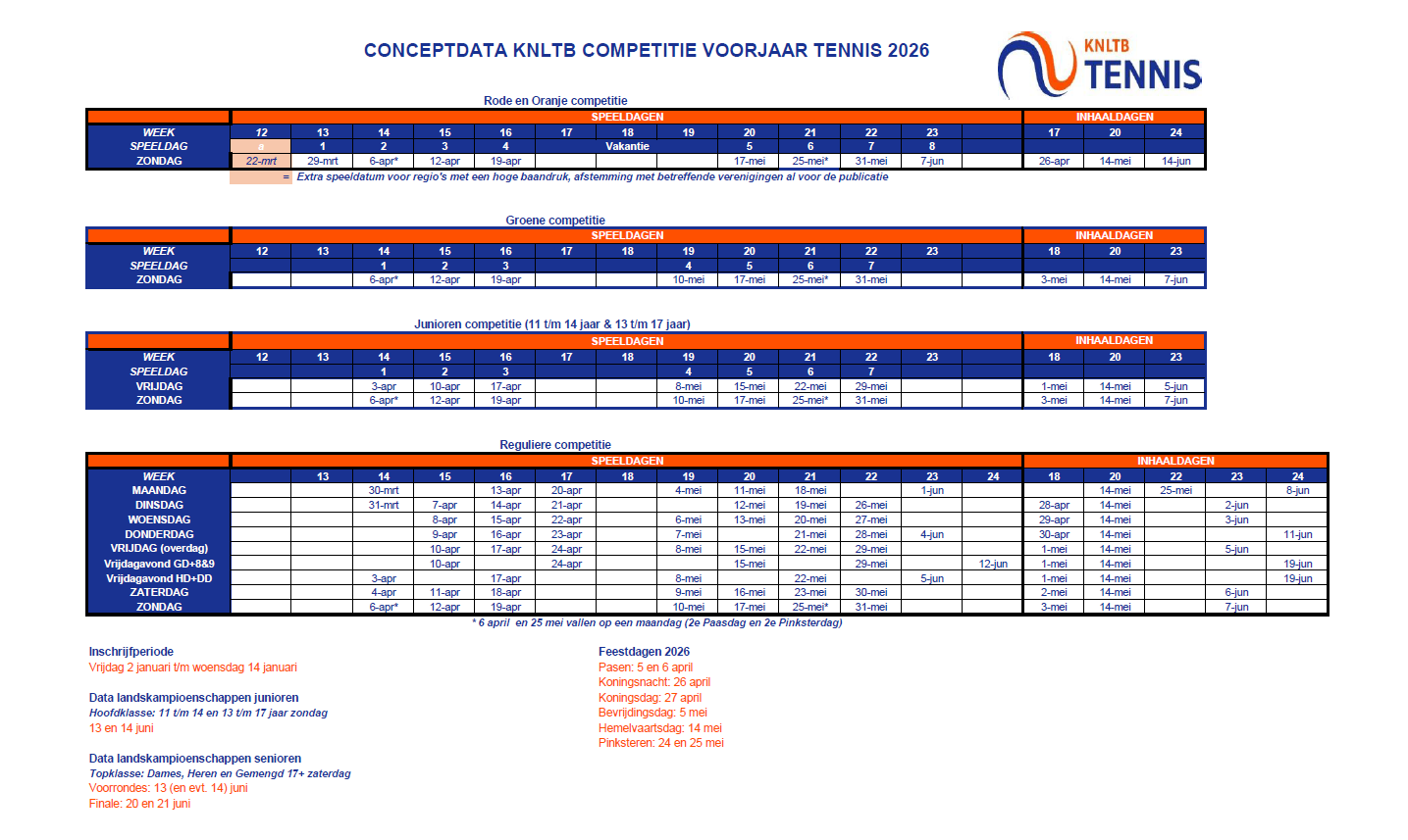 Hierbij de data en indeling voor de Voorjaarscompetitie 2026.